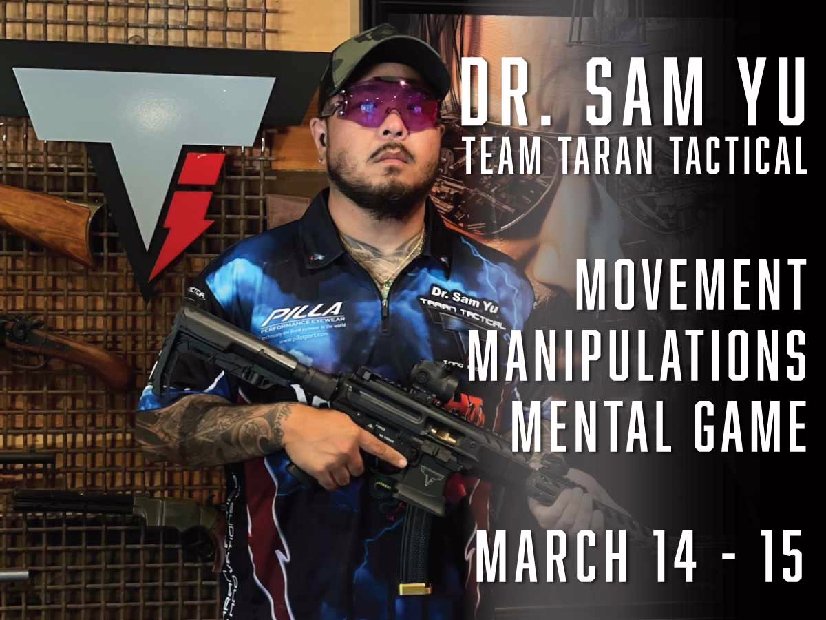 Sam Yu of Team Taran Tactical has extensive training and coaching with and alongside many world class shooters and champions. Most notably, working closely with Taran Butler of Taran Tactical innovations in which Sam is a sponsored factory shooter. Sam has been training and coaching all different walks of life that include: civilian, police, swat, FBI, military/special forces, competitive shooters, celebrities, pro athletes and musicians coupled with 20 years of teaching experience within multiple disciplines of topics and fighting arts.